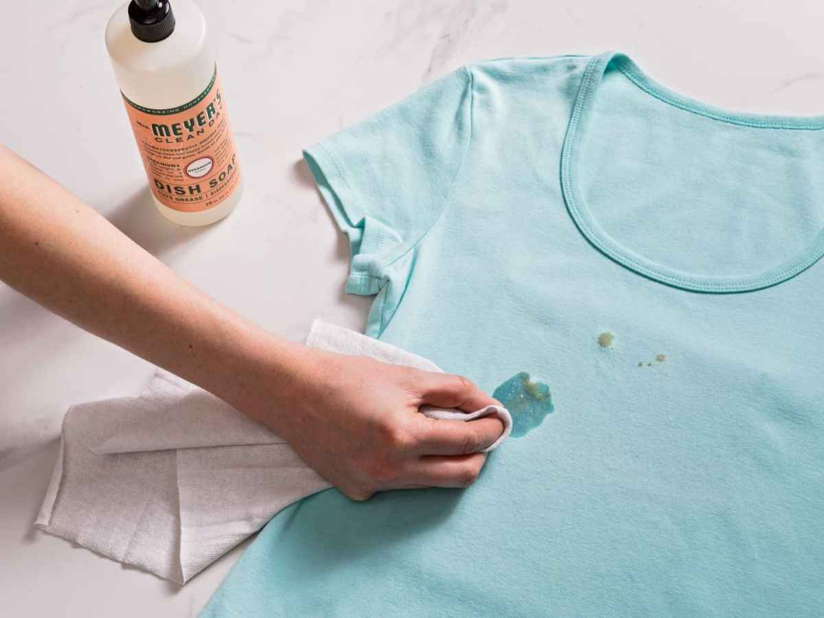 dishes. Apply a sizable amount of detergent right onto the stain and